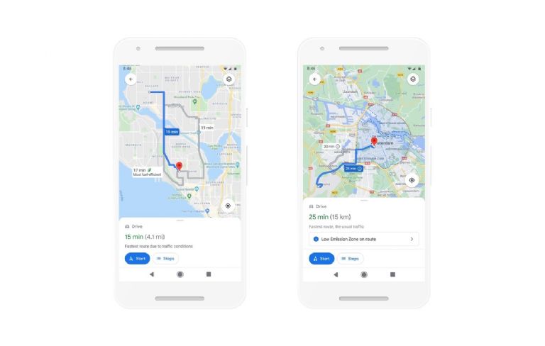 Finalmente, Google introduce también rutas ecológicas. Con esto se refiere a mostrar la ruta que es más eficiente en consumo de combustible.