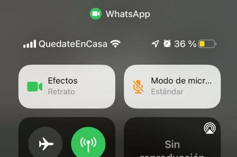 Una vez con el dispositivo listo es necesario hacer una videollamada en Wha con cualquier contacto y checar que el panel de control esté activo el Efecto de retrato, tal y como aparece en la imagen.