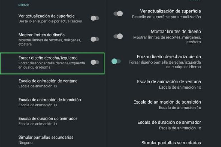 De nueva cuenta se debe ir Ajustes y 'Ajustes adicionales' para en las 'Opciones de desarrollador' seleccionar 'Forzar uso de la dirección de formato de derecha a izquierda'.