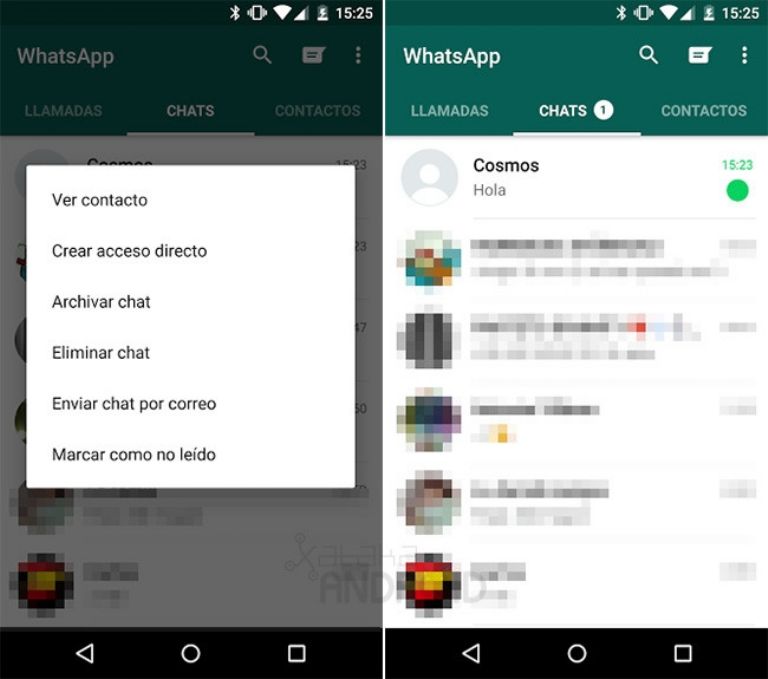 Entre las opciones que se brindan estará la opción de 'Marcar como no leído' para que al momento de elegirse pase a mostrarse como si se tuviera un nuevo texto.