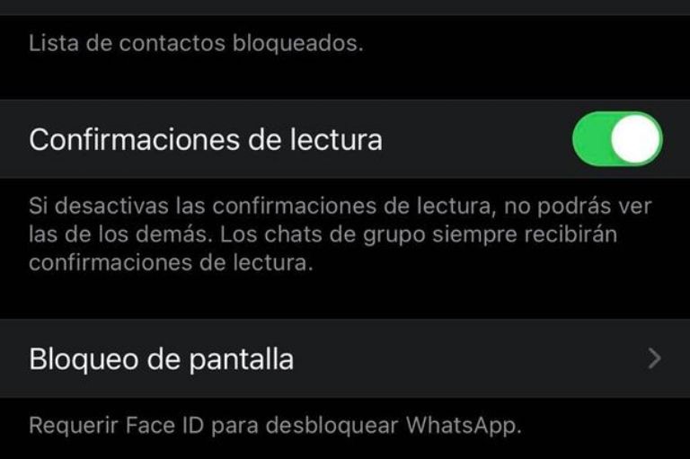 Una vez dentro del Wha es necesario ir al apartado de Ajustes para buscar la opción de Privacidad e inmediatamente observar 'Confirmaciones de lectura', opción que se debe desactivar para evitar el doble check azul.