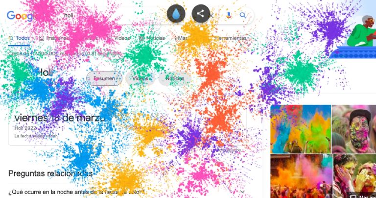 Si bien el Holi de este 2022 será hasta el 18 de marzo, Google, el buscador más popular del mundo, decidió adelantarse y comenzar a llenar del sentimiento de celebración de los usuarios con un doodle interactivo que se puede usar las veces que sea necesario.