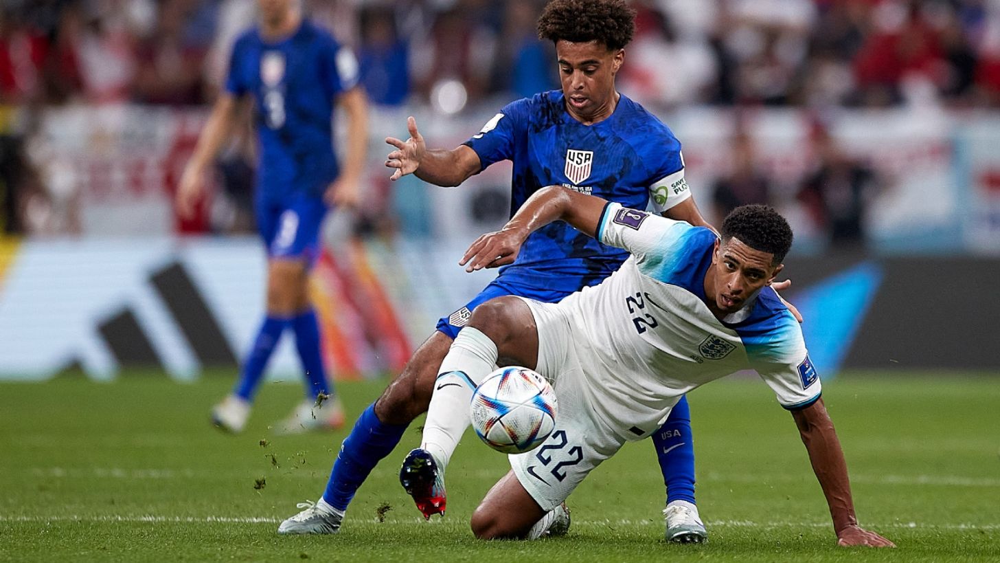Inglaterra tuvo la primera de peligro con una llega por derecha que Saka pasó a Bellingham y éste a su vez mandó a Harry Kane quien en el centro del área remató con mala dirección y un defensa de Estados Unidos alcanzó a desviar a tiro de esquina. Después los norteamericanos tuvieron una opción con Christian Pulisic quien en un extremo del área mandó el balón al travesaño de la portería de Pickford.