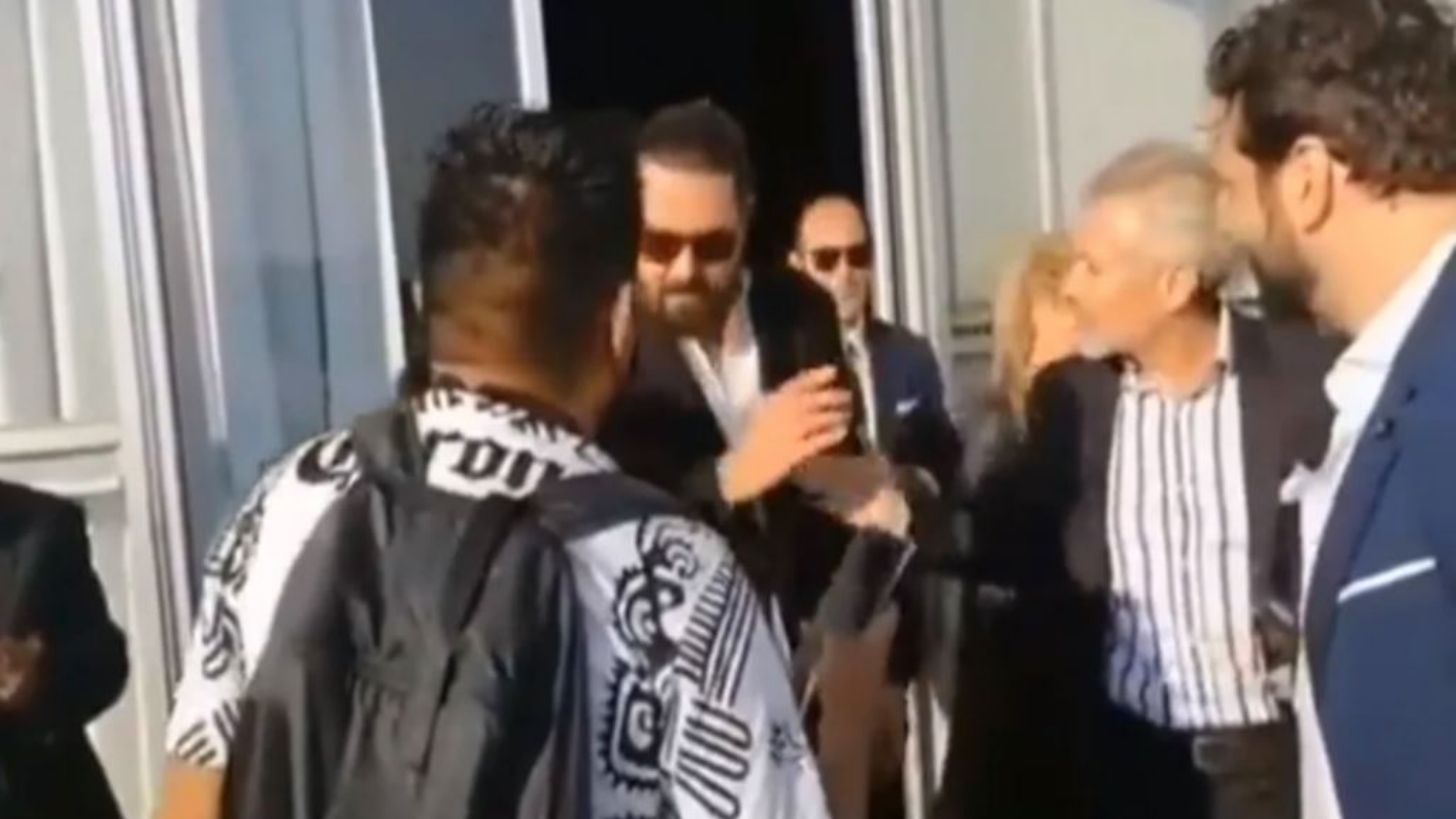 El presidente y propietario del Guadalajara, Amaury Vergara, aparece en el video regalando autográfos a unos seguidores en la décima investidura del Salón de la Fama en Pachuca.