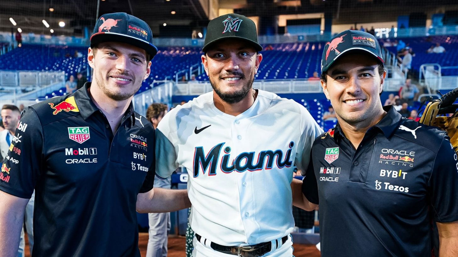 Miami, Estados Unidos.- A unos días de que se corra el Gran Premio de Miami de la Fórmula 1, los pilotos de Red Bull Sergio 'Checo' Pérez y Max Verstappen acudieron al partido entre los Marlins y los Diamondbacks en el LoanDepot Park en dicha ciudad de Miami.