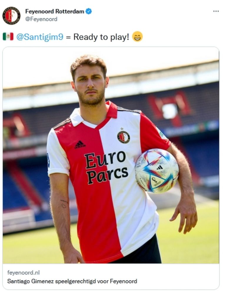 "Santiago Giménez puede incorporarse al Feyenoord tras haber recibido todos los documentos necesarios para su permiso de trabajo y residencia. Por lo tanto, el atacante de 21 años es elegible para jugar y puede usarse para el Feyenoord", explicó el club a través de un comunicado.