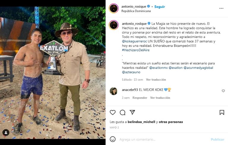 Ciudad de México.- Si hay un programa de la televisión mexicana que ha capturado la atención de las familias es el Exatlón México, el cual es producido por TV Azteca y transmitido por el canal Azteca Uno. Parte de su éxito se debe a la participación del conductor deportivo Antonio Rosique, quien con muchos años de experiencia en la narración de diferentes competencias, fue invitado a sumarse al proyecto.