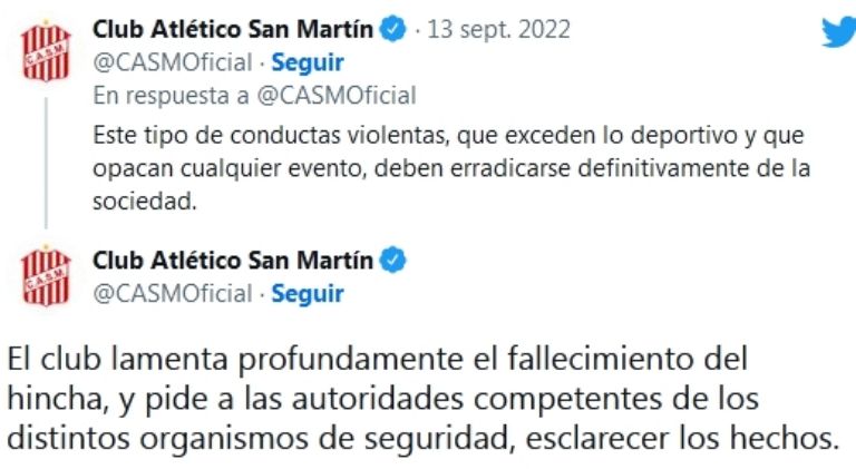 La policía reportó que la víctima fue privada de la vida durante un enfrentamiento entre dos grupos de ultras violentos del San Martín de Tucumán; otro aspecto que causó indignación es que el partido no se suspendió, pues Rubén Moisello, presidente del club, afirmó que más allá del hecho, las condiciones para el partido estaban dadas.