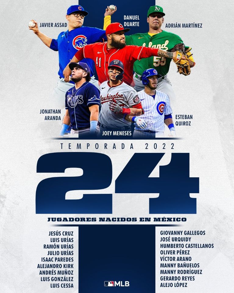 Ciudad de México.- Esta temporada 2022 del beisbol de las Grandes Ligas ha sido muy destacada para los peloteros mexicanos, quienes han logrado buenas actuaciones con sus respectivos equipos. Aunado a esto, este año 24 jugadores nacidos en nuestro país han visto acción, por lo que se igualó la máxima cantidad para una sola temporada, marca impuesta en 2003.