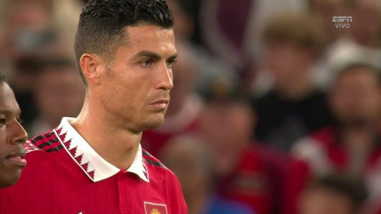 Mánchester, Inglaterra.- Previo al arranque del partido entre Manchester United y Real Sociedad en la primera fecha de la Europa League, se tomó un minuto de silencio para honrar la memoria de la Reina Isabel II, cuya fuerte se anunció este jueves 8 de septiembre. Varios futbolistas mostraron su tristeza ante este emotivo momento, pero fue la reacción de Cristiano Ronaldo la que llamó más la atención.
