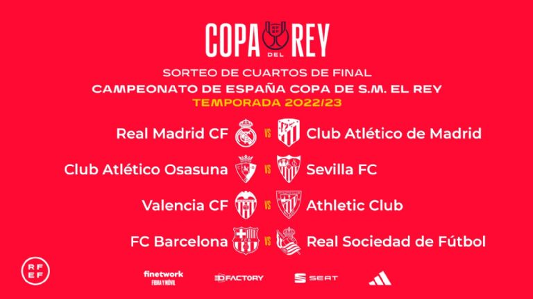 "Todos los partidos contra el Atlético son muy parejos y difíciles”, dijo tras el sorteo Emilio Butragueño, director de relaciones institucionales del Real Madrid, citado por la web del club. Por otra parte, al Barcelona le tocará enfrentar a la Real Sociedad el miércoles 25 de enero. En tanto que el Sevilla donde juega el mexicano Jesús 'Tecatito' Corona, y único mexicano que queda en competencia, jugará ante el Osasuna ese mismo día. El cuadro eliminatorio lo complementa el duelo entre el Valencia y el Athletic de Bilbao del jueves 26.
