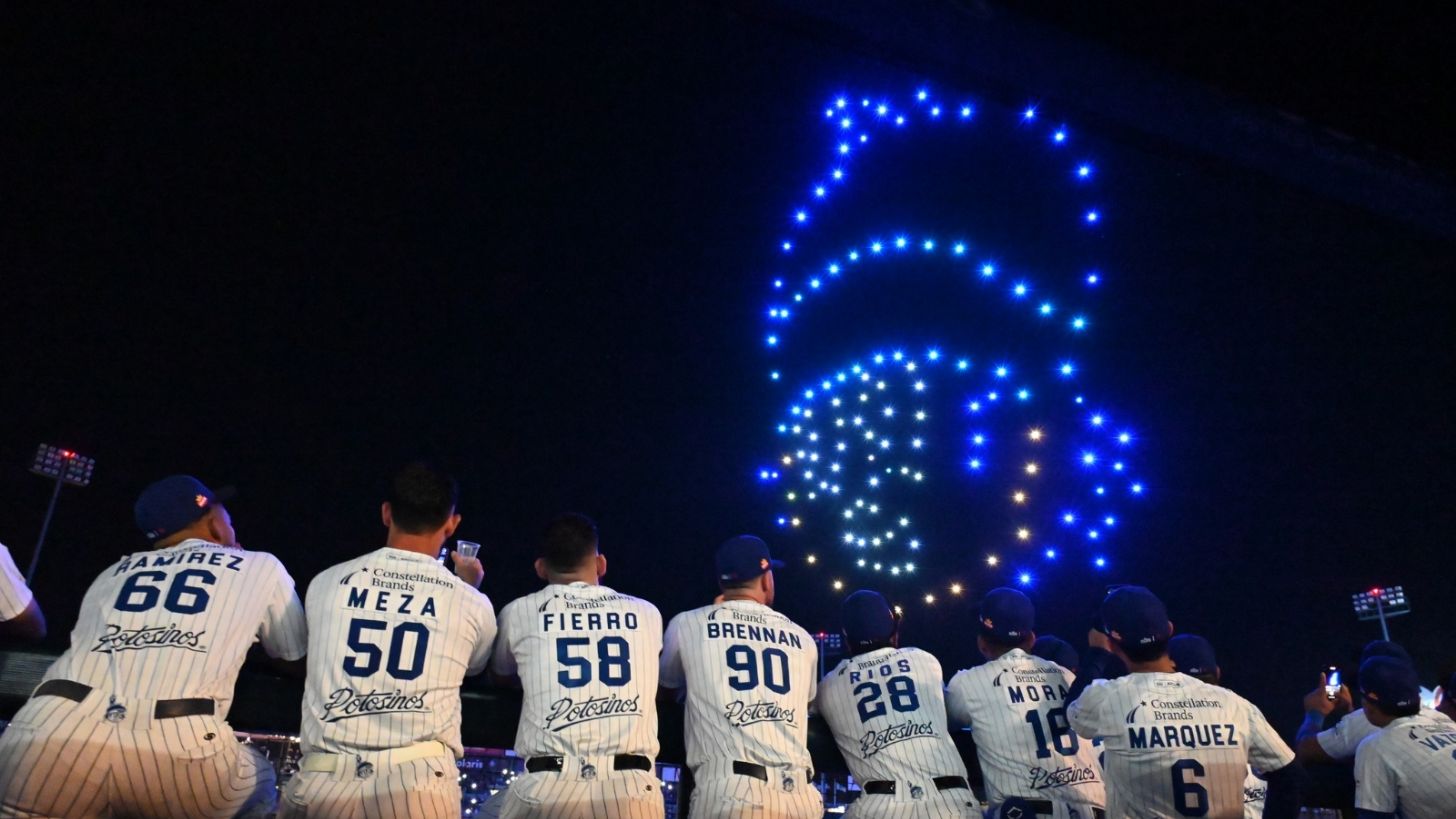 También se pudo ver como se formó la leyenda 'Puro Yaquis' en perfecto color azul, para después dar entrada a figuras más complejas como el Yaqui característico ene logo del equipo, así como la formación de una jugada típica del diamante en perfecta sincronía. Para cerrar un bat y una bola de beisbol que hicieron disfrutar al público presente la noche de este sábado en donde para muchos fue un ansiado regreso.