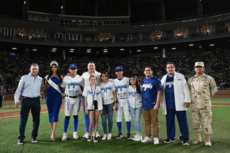 Previamente el plantel de los Yaquis fue presentado ante su público que los vitoreó a cada uno a su salida. Tras la presentación se realizó la tradicional ceremonia cívica en la que se cantó el himno nacional y por supuesto el lanzamiento de la primera bola por parte de Clarisa Corona quien recibió un trasplante de riñón, así como Claudia Valenzuela, paciente remisa de cáncer de mama por lo que como fuente de inspiración ante la s adversidades fueron elegidas para el lanzamiento.