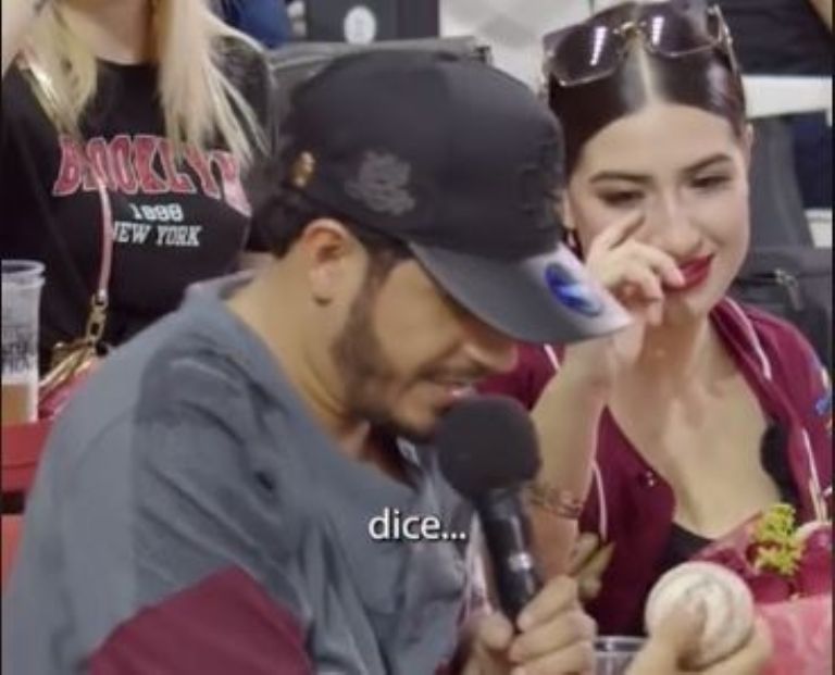 Fue durante la llamada 'kiss cam' que se observó a la pareja apareciendo en la pantalla del estadio y el hombre en cuestión recibió una pelota de beisbol con algo escrito, al parecer para distraer el verdadero propósito, pues casi enseguida se levanta y se hinca causando los gritos en la tribuna. Es entonces que ocurre lo que todos imaginaban y saca de su bolsa una caja roja para mostrar en seguida el anillo.