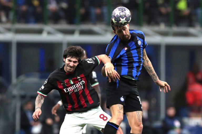 Sandro Tonali creó una nueva oportunidad en una jugada por izquierda en donde llegó a línea final y mandó un pase retrasado que Giroud no pudo concretar y el balón se quedó en los guantes de Onana. Barella tuvo un remate desde el centro del área para el Inter, pero tampoco superó la meta rival. Sin más posibilidades claras para ambos equipos se fueron empatados al descanso y todo se definió en el segundo tiempo.