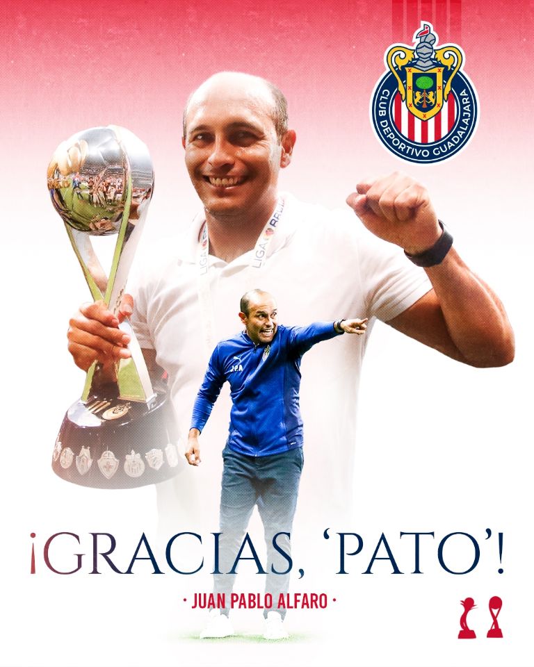 "El Club Deportivo Guadalajara informa que a partir de hoy, Juan Pablo Alfaro deja la dirección técnica de Chivas Femenil. Agradecemos el profesionalismo y el profundo compromiso que el ‘Pato’ mostró para llevar el proyecto del Rebaño Femenil al siguiente nivel deportivo, ya que bajo su gestión el equipo vivió el momento más brillante y exitoso de su historia", informó el equipo tapatío.