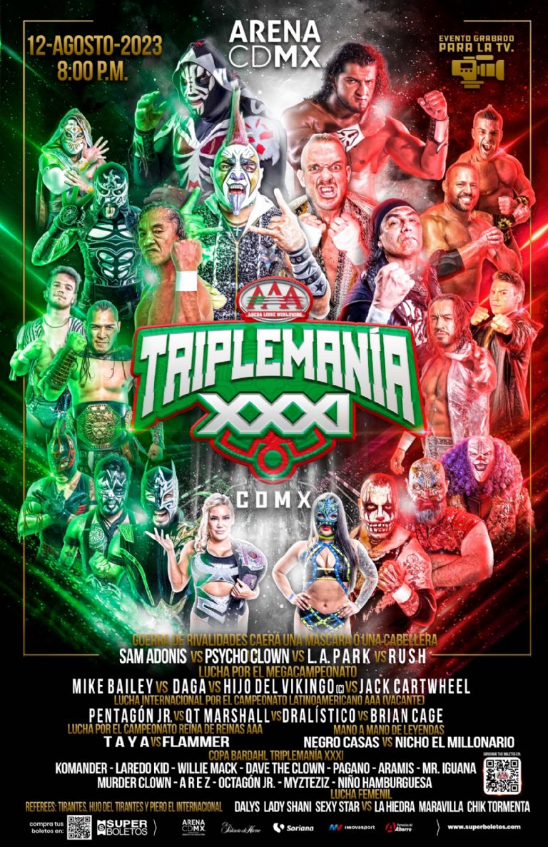 La división femenil pondrá en juego el Campeonato Reina de Reinas que ostenta Taya y que Flammer tratará de arrebatárselo. Mientras que por la llamada Copa Triplemanía se enfrentarán Komander, Laredo Kid, Willie Mack, Dave The Clown, Pagano, Aramis, Mr. Iguana, Murder Clown, Arez, Octagón Jr. y Myzteziz Jr. La cartelera la abrirá una lucha de tercias femenil en donde Dalys, Lady Shani y Sexy Star se medirán a Hiedra, Lady Maravilla y Chik Tormenta.