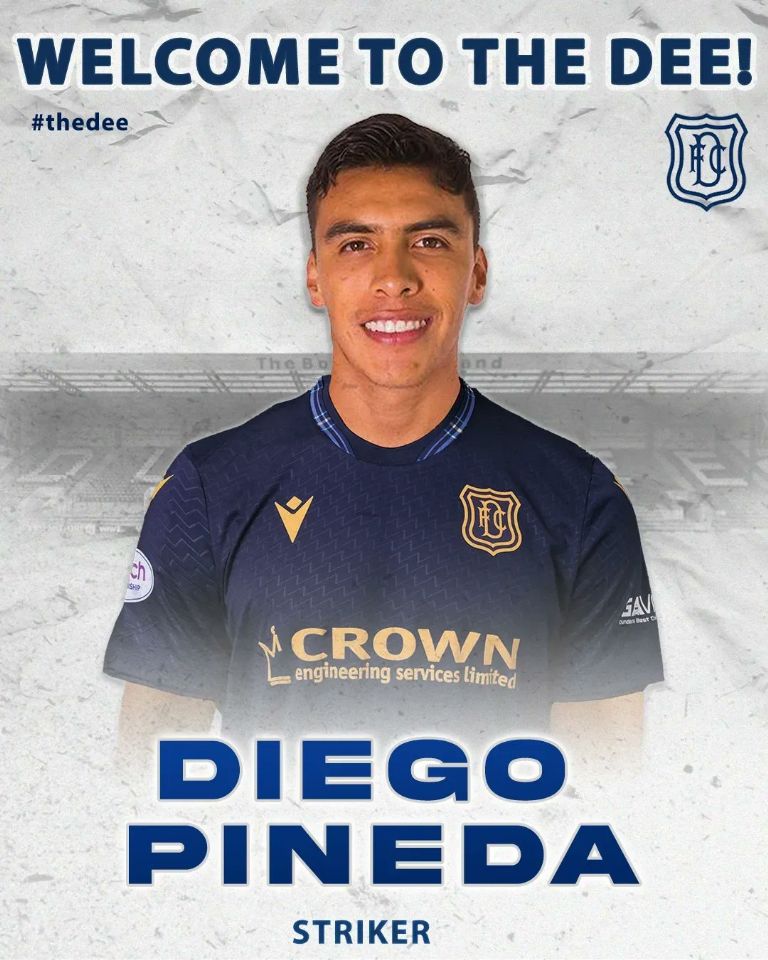 El excanterano americanista, jugará ahora en el Dundee FC de la Scottish Premiership (Primera División de Escocia) en busca de ganarse un lugar en el cuadro. El equipo europeo anunció oficialmente su incorporación. "Dundee Football Club se complace en anunciar el fichaje del delantero mexicano Diego Pineda, sujeto a autorización internacional", informó el equipo en el que también jugará el defensa mexicano Antonio Portales quien lo recomendó.