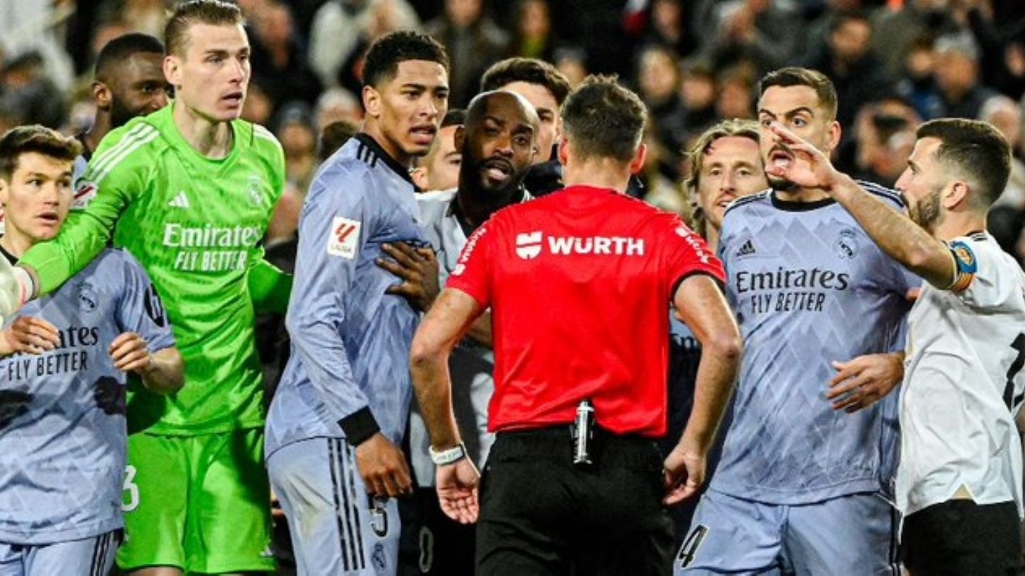 Después llegó con una jugada que terminó con gol del Real Madrid y que el árbitro anuló para después dar por terminado el partido. Tras un tiro de esquina del Real Madrid la defensa de Valencia rechazó la pelota, después el balón fue elevado al área en donde Bellingham anotó el gol de cabeza, pero Gil Manzano ya había dado por terminado el partido. Al parecer el silbante había indicado que tras el tiro de esquina se terminaba el juego y por eso no validó la acción.