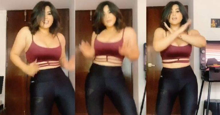 La hermana de 'Lapizito' se dejó ver bailando al ritmo de Jennifer Lopez frente al espejo mientras luce un body color negro, con medias repletas de brillantes, botas y chaleco de mezclilla, así como el cabello suelto.