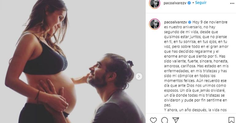 Y ahora, un año después, la vida nos sorprende con una Bebé hermosa que está por nacer y la bendición de una familia. Feliz primer aniversario mi amor Dulce María ¡Feliz 9 de noviembre! Te amo eternamente", escribió Paco.
