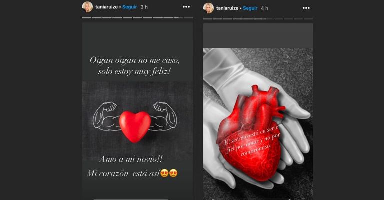 Oigan, oigan, no me caso, solo estoy muy feliz. Amo a mi novio, mi corazón está así (con emojis de enamorada)", escribió Tania.
