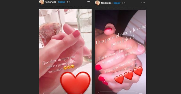 En dicho contenido, Tania mostró un par de imágenes donde se apreciaron un par de manos entrelazadas y con un mensaje que decía: