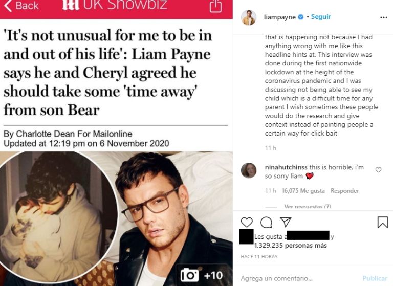 Londres, Reino Unido.- El cantante Liam Payne, quien es exintegrante de la popular banda One Direction, manifestó su molestia en redes con el medio británico, The Daily Mail, el cual difundió una noticia falsa sobre la relación que mantiene con su hijo Bear, el cual nació en 2017.