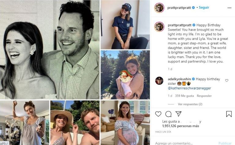 Pratt también mencionó que se sentía un hombre completamente afortunado por estar casado con ella y agradeció en la misma publicación por todo el amor y cariño que le ha dado desde que ambos comenzaron su relación en el año 2019, un año después de haberse divorciado de su exesposa.