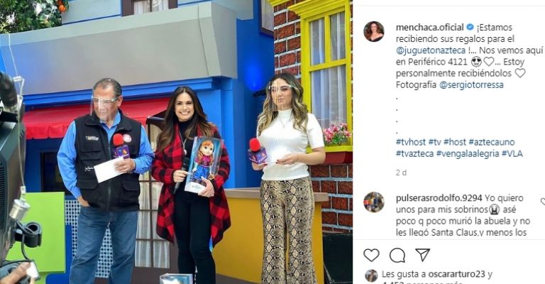 ¡Estamos recibiendo sus regalos para el @juguetonazteca !... Nos vemos aquí en Periférico 4121... Estoy personalmente recibiéndolos", escribió la famosa en la postal.