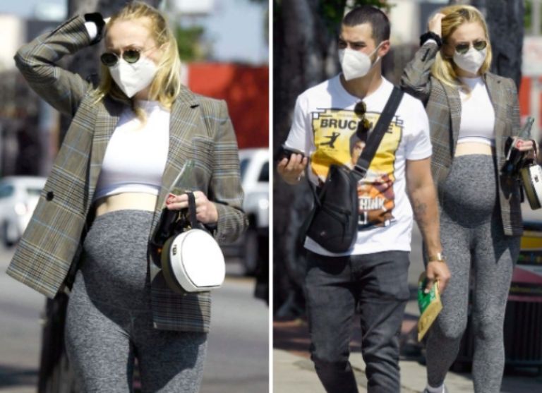 Sophie y Joe recibieron a su hija llamada Willa en julio, pero en fotografías previas mientras daba caminatas con el cantante, siempre se aseguró de usarlos, por lo que muchas personas, siempre le han reconocido y felicitado por fomentar el uso del mismo durante la pandemia.