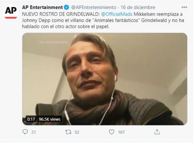 Así mismo, Mikkelsen, de 55 años, habló con el medio Associated Press sobre remplazarlo e inclusive compartió en un video sobre si había hablado con Depp, sobre el hecho de que sería el quien tomaría su lugar. Sin embargo, afirma que no ha podido hablar con el actor.