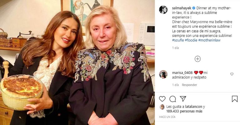 En la foto que publicó Salma, se mostró junto a la señora Louise Gautier, mientras mostraban parte de su cena navideña, las cuales ha disfrutado año con año.