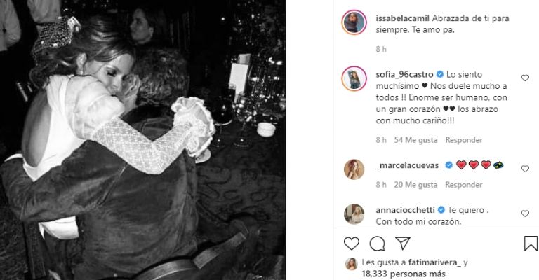 Issabela, quien es esposa del actor y político Sergio Mayer, compartió una conmovedora fotografía en la que aparece dando un enorme abrazo a su padre y acompañó la publicación con este breve pero fuerte mensaje de despedida.