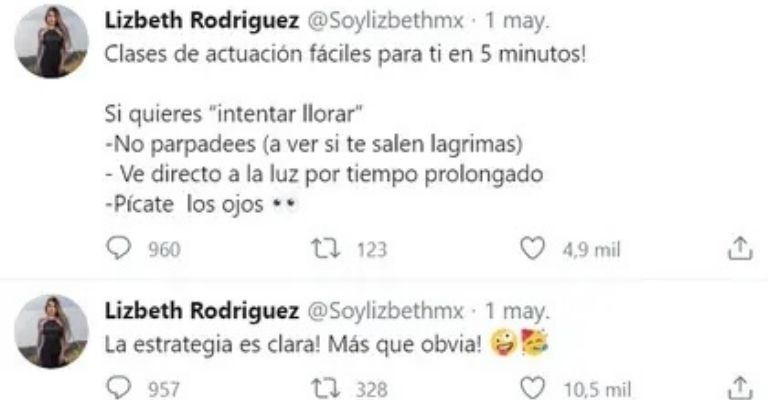 ¡Clases de actuación fáciles para ti en 5 minutos! Si quieres ‘intentar llorar’: -No parpadees (a ver si te salen lagrimas) - Ve directo a la luz por tiempo prolongado -pícate los ojos”.