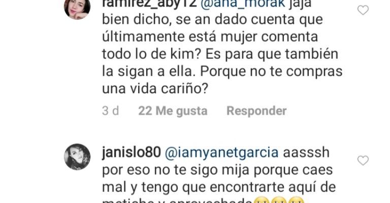 Muchos fans atacaron a García acusándola de buscar fama en las redes sociales de Kimberly. Fueron contundentes al decirle que lo único que ella hace es exhibirse y que desde hace mucho su contenido dejó de ser llamativo para los internautas.