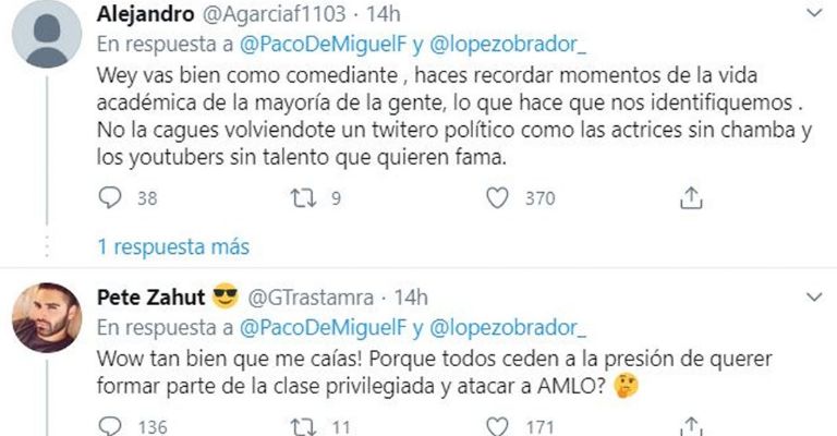 Mientras tanto, otros más comenzaron a querer cancelarlo, pues lo exhibieron como alguien que imita y estereotipa a las mujeres, sin embargo, los fans de Paco han manifestado que les parece sospechoso que la crítica haya surgido después de que él hablara el mandatario.