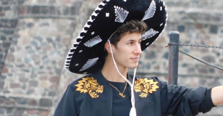 El youtuber se mostró más que contento en la zona arqueológica, en el estado de México y con mucho orgullo portó un sombrero de charro y un traje negro con la imagen de Quetzalcóatl.