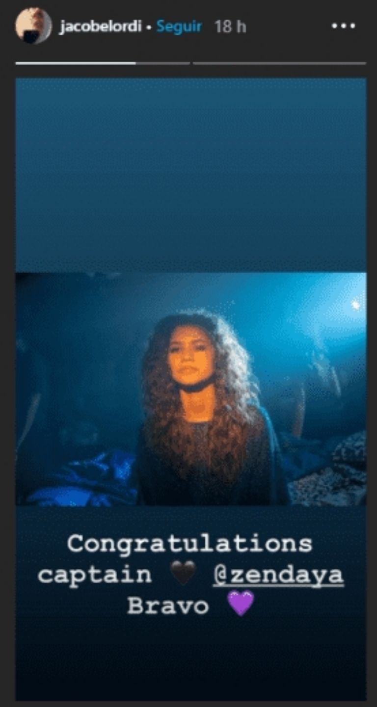 A pesar de todo, cuando Zendaya hizo historia al ganar el Premio Emmy, como mejor actriz dramática, siendo la mujer más joven en hacerlo, hubo indicios de que la expareja no terminó en malos términos a pesar de todo pues Jacob felicitó a su compañera de elenco en sus historias de Instagram un día después.