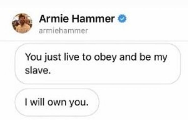 La polémica afirmación fue viralizada gracias a unas supuestas capturas de pantalla filtradas por una mujer que afirma que Hamer le mandó los incómodos mensajes a través de Instagram, donde incluso hace alusión a violación y canibalismo.