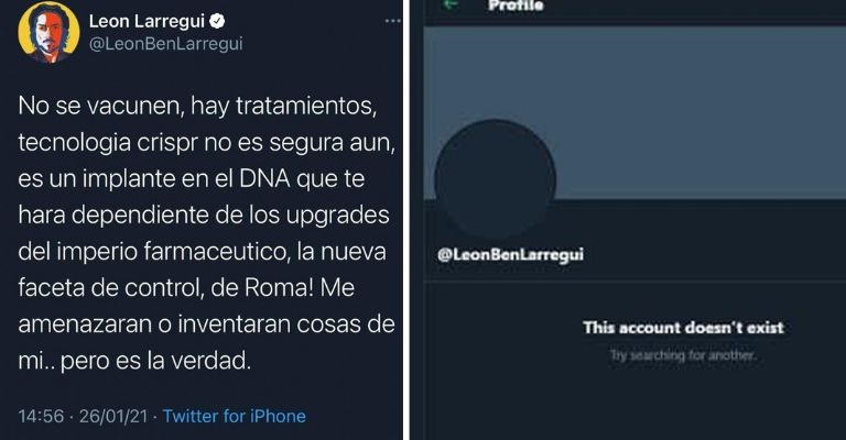 Tras esto, la cuenta del vocalista de Zoé fue cancelada, pues al buscar el perfil de @LeonBenLarregui, solo aparece un mensaje en el que se indica que ya no existe.