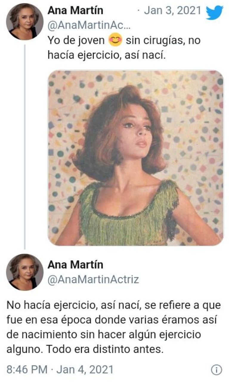 Yo de joven... sin cirugías, no hacía ejercicio, así nací", escribió la primera actriz.