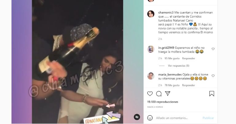 Junto al sonorense se puede ver a su guapa y joven novia a quien se le aprecia una enorme panza de embarazo, con ello los rumores de que Natanael se encuentra a punto de convertirse en padre comenzaron a rondar por Internet.