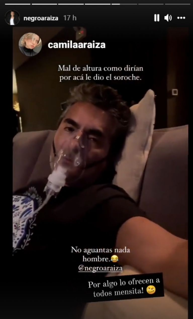 Su hija Camila fue quien lo estaba grabando y aprovechó para burlarse de él: "Mal de altura como dirían por acá le dio al soroche. No aguantas nada hombre… ¿Y esta payasada?".
