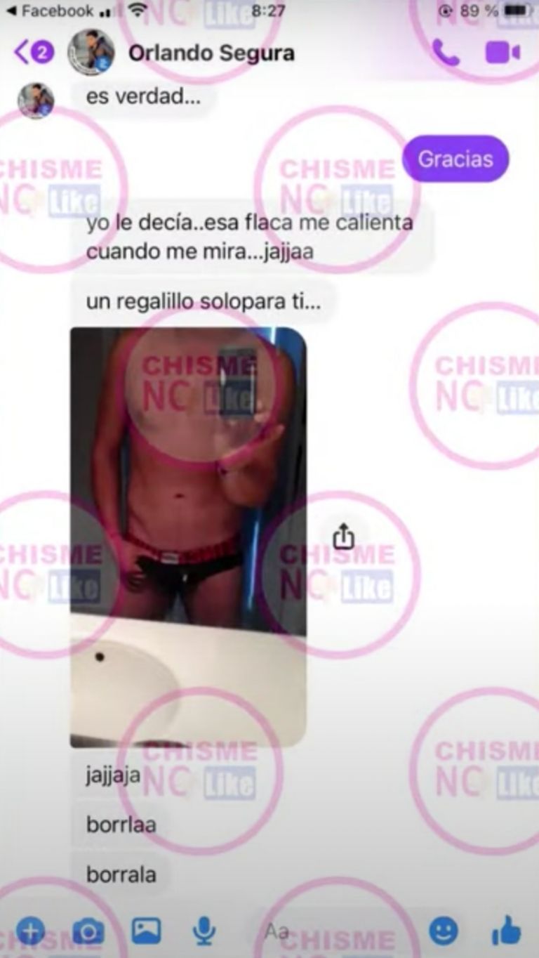 Acto seguido, mostraron la captura de pantalla de una conversación por Facebook Messenger en la que se incluye una fotografía donde presuntamente aparece Segura en solo ropa interior, pero no se ve el rostro.