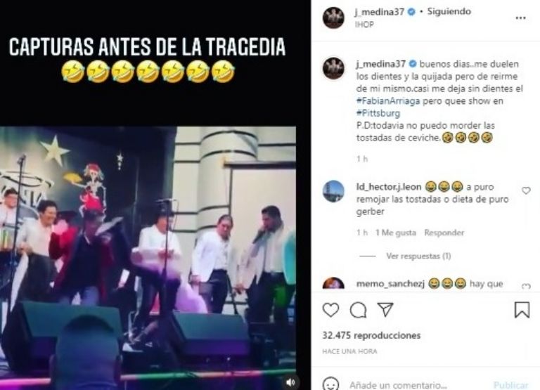 Evidentemente, el cantante se muestra sorprendido pero, por fortuna nada pasó a mayores y Medina decidió compartirlo con sus más de 700 mil seguidores con el siguiente texto: