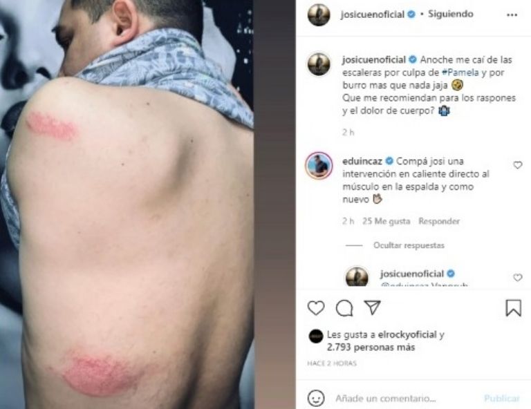 Según la descripción del post, Josi rodó por las escaleras, de tal forma que no pudo protegerse y terminó todo golpeado y lleno de hematomas.