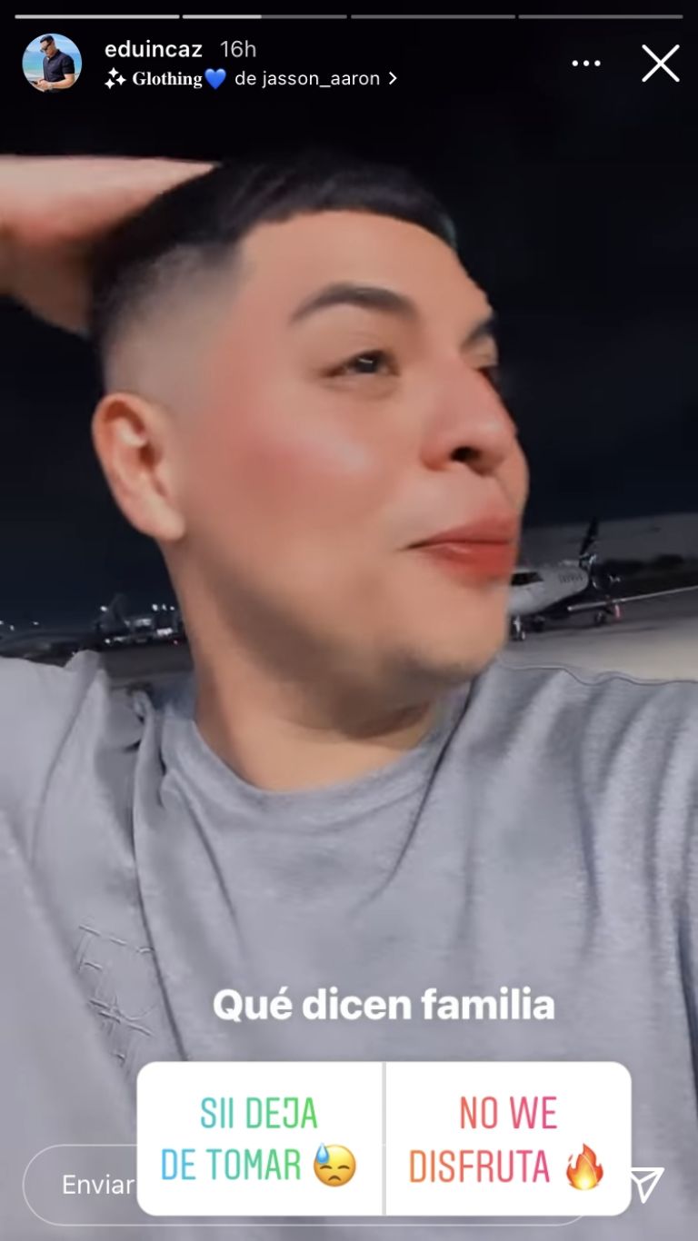 Por medio de un video corto. Eduin dijo que dejaría de tomar alcohol y cuestionó a sus fans acerca de esa posibilidad ya que, cabe recordar, hace unos días el famoso celebró en grande el bautizo de su hija Geraldine donde musicalmente estuvieron como invitados el grupo Calibre 50, Los Tucanes de Tijuana, Código FN, entre otros.