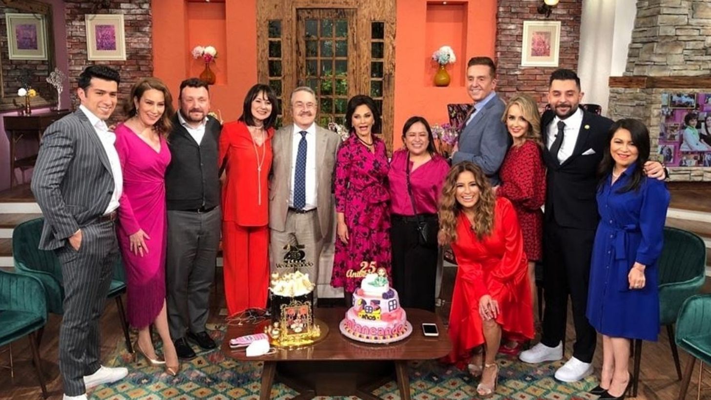 La conductora de Ventaneando lució un blazer que recuerda a las chaquetas de cuero color negro de los años 60, misma que le llegaba hasta el ante brazo, un top color arena y unos pantalones color verde olivo suave, algo que combina bastante bien en lo que al top y al pantalón se refiere, mientras que quizás el negro pudiera desentonar un poco, de no ser porque se trata de uno de los tonos más compatibles que existen.