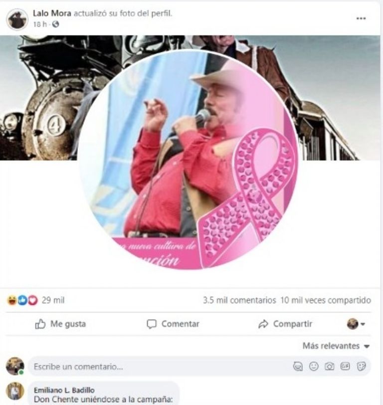Por medio de una página de Facebook, que presuntamente pertenecería al artista, se habría cambiado la foto del perfil y se colocó una con un listón rosa, como apoyo al Día Internacional de la lucha contra el cáncer de mama.